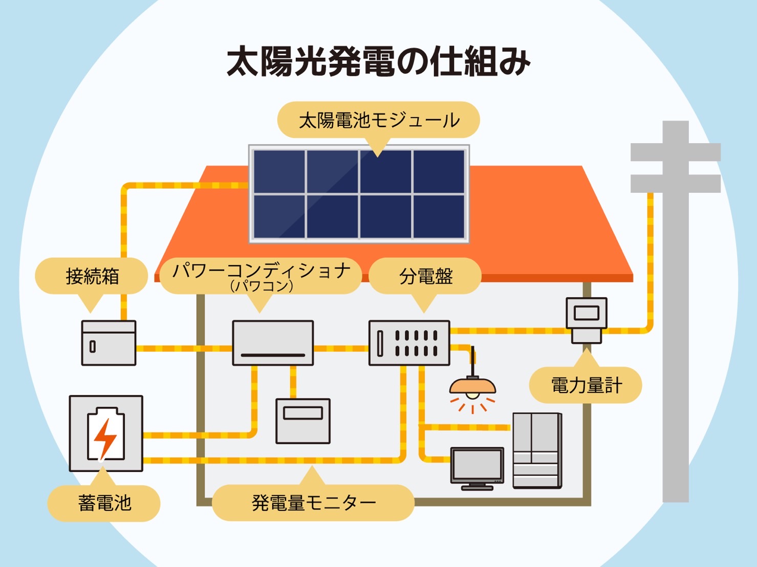 こちらの役割は太陽のエネルギーを利用し、電気を生み出す仕組みのことを一般に太陽光発電といいます。